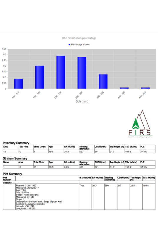 FIRS has been designed to cater for users of different needs and especially different budgets. The pay as you go approach is intended to encourage small forest owners and infrequent users to realise the benefits of an industry standard inventory system. It also represents a secure and interactable repository for corporate inventory data which may be backed up or extracted at any time. The web app approach is aimed at easy access and no-fuss licencing and version updating.  Back to home